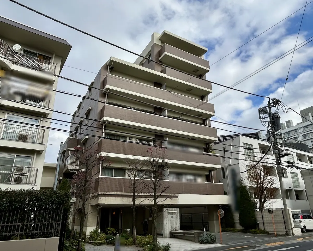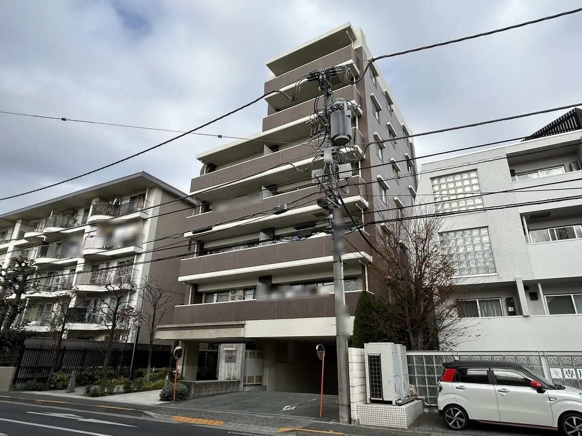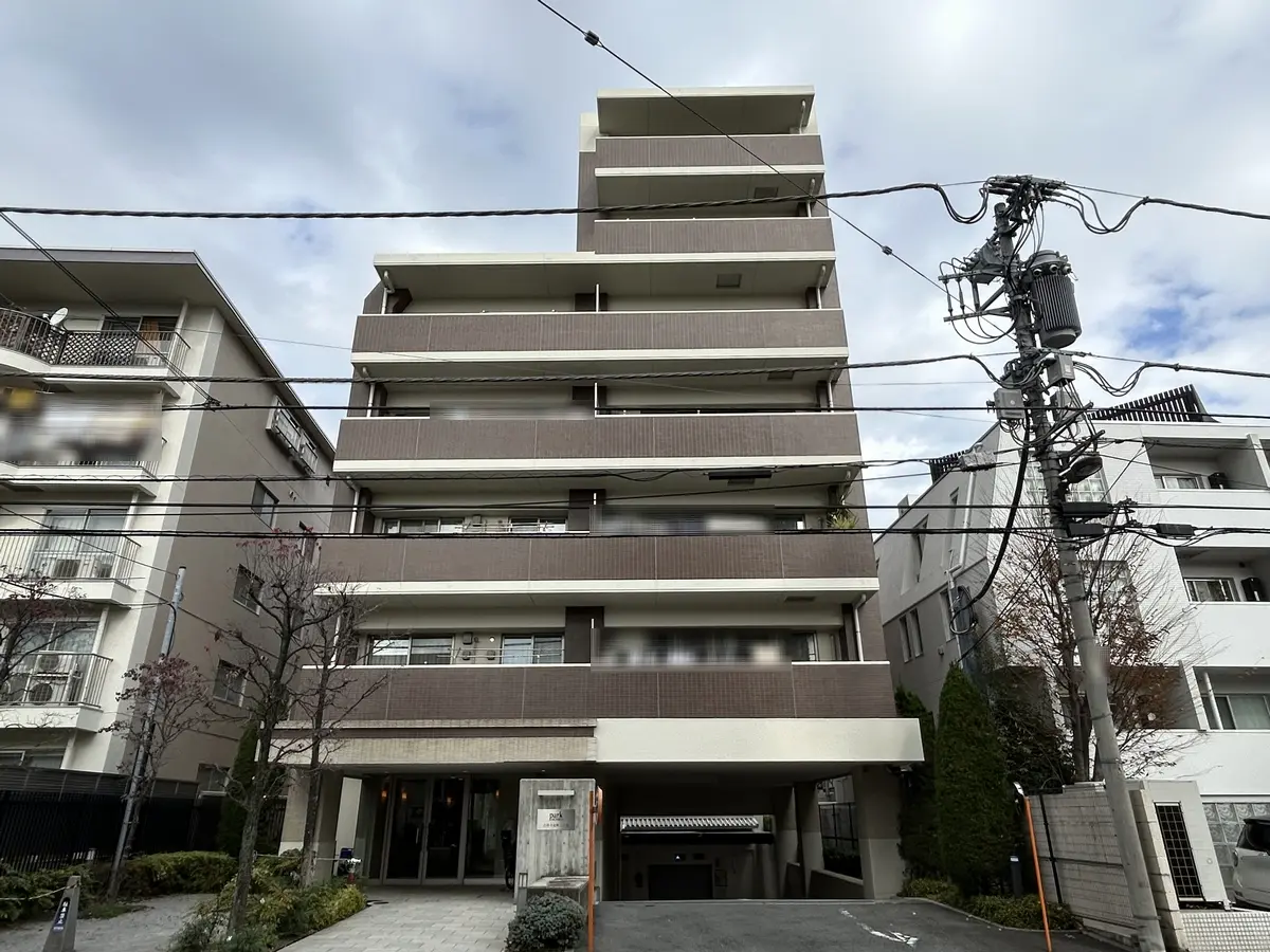 外観はライトブラントとライトグレーの調和した落ち着いた雰囲気が特徴のマンションです。