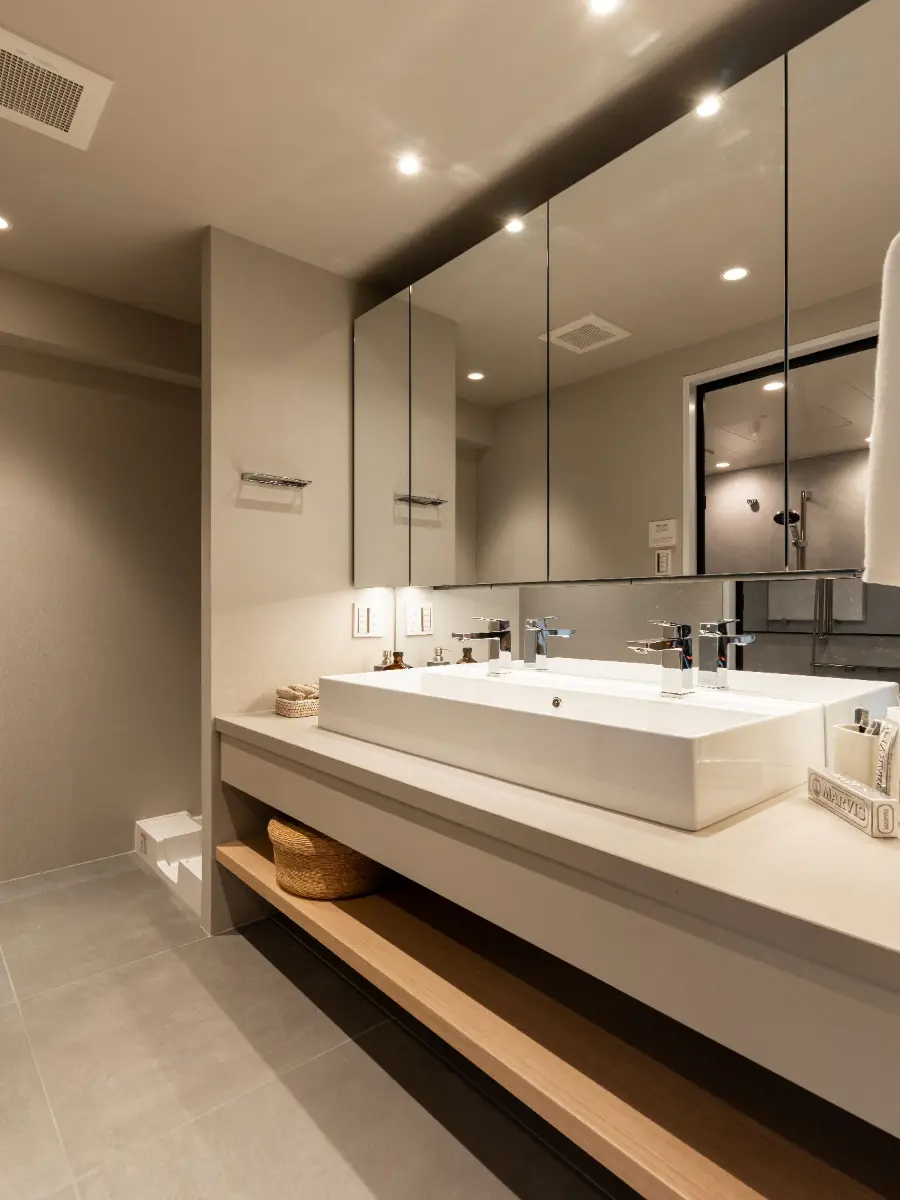 洗面台には2ボウル洗面台を採用し、朝の忙しい時間でも広い洗面台で身支度していただけます。