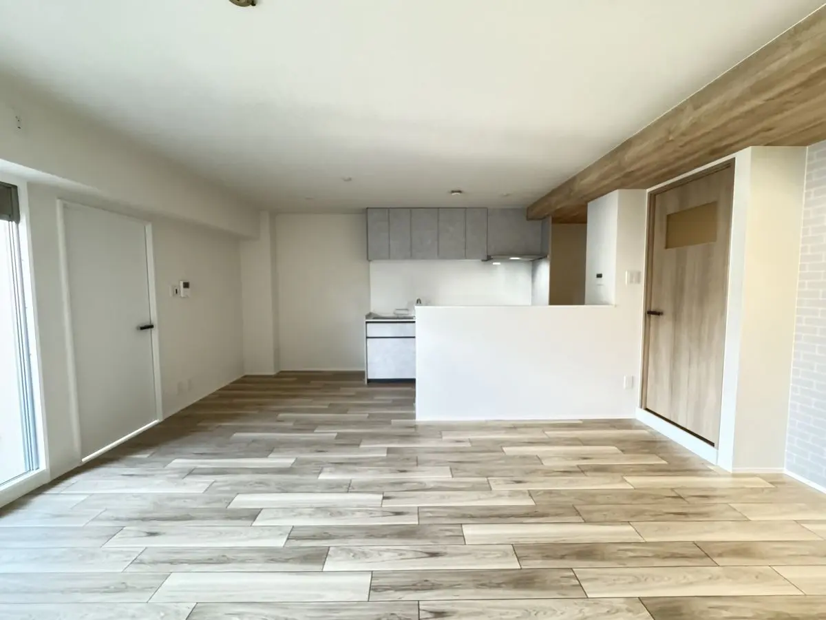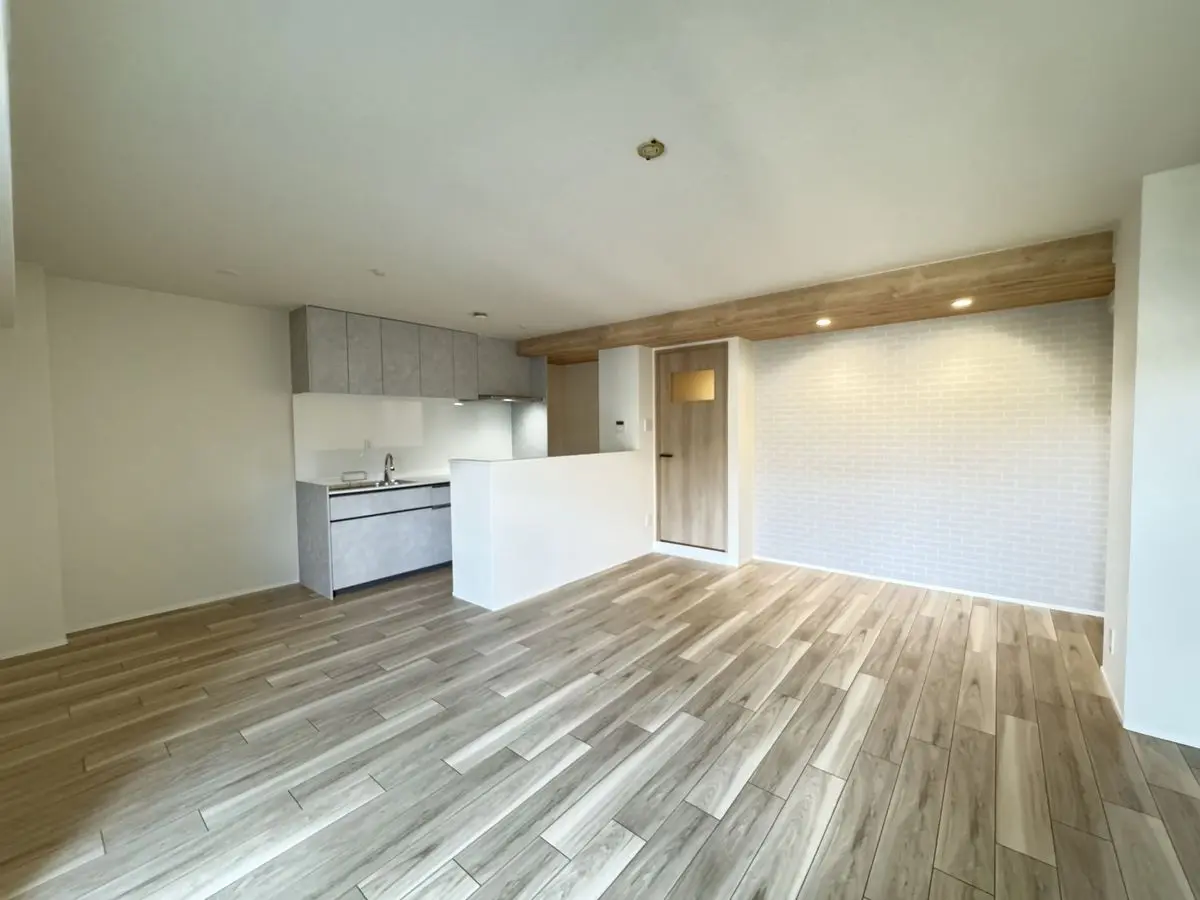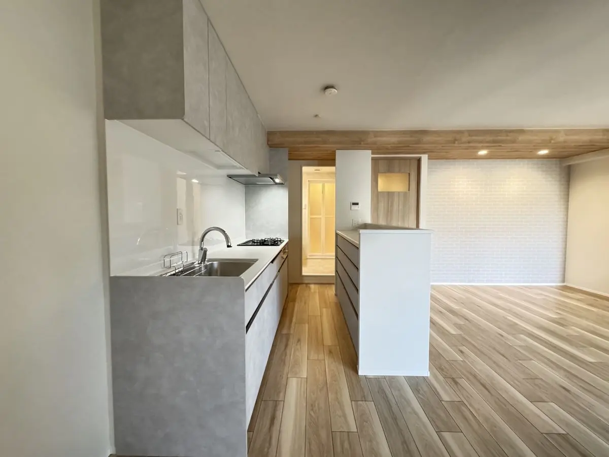 キッチン新調、ユニットバス新調、洗面台新調、トイレ新調、給湯器新調、分電盤新調、クロス全室貼替え、フロアタイル全室上貼り