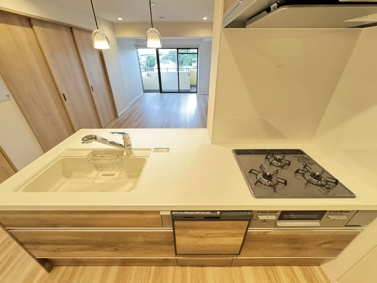 システムキッチン新調、浴室新調、洗面台新調、トイレ新調、クロス全室貼替、ハウスクリーニング