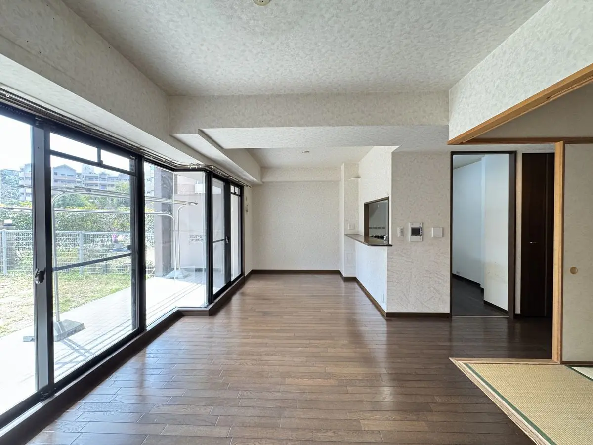 室内は専有面積70.28uの3LDKの間取りで、南東側に専用庭約31uもございますので陽当たりの良いLDKとなっており明るい室内空間でお過ごしいただけます。