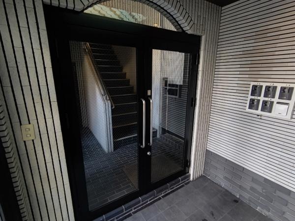 こちらのマンションは、各住戸に門扉付きのポーチを設けており、住戸の独立性を高めています。エントランスには、オートロックが設置されており、セキュリティ面が安心です。