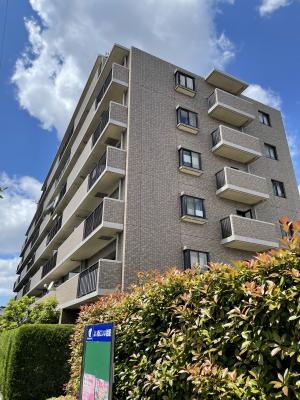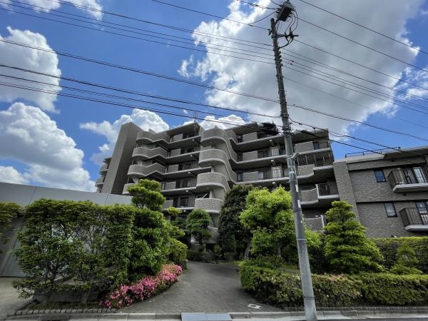 マンション外観はアースカラーのタイル貼りで、手入れのされた植樹が外構を彩り、周囲の街並みと調和しています。また、敷地内公園が設けられています。