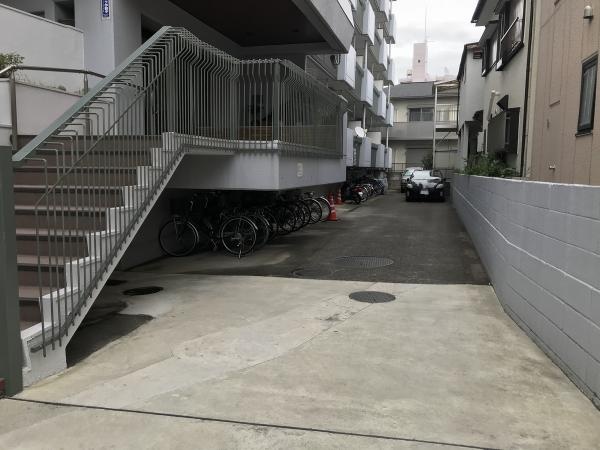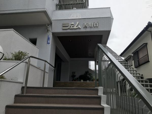 ジェム西川口はグレーを基調とした外観で、エントランスは奥まったところにあります。