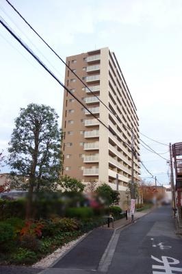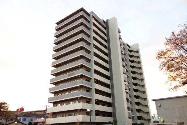 スタイリッシュなタイル貼り外観の地上14階建て総戸数95戸の大型マンションです。