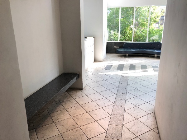 建物は11階建て。外壁は打ち放し調塗装をメインとした明るい色味ですっきりとした印象。またアプローチには、夜間の景観を配慮されたアッパーライト、ベンチが配置されたポケットパークも設けられています。エントランスは、二層になった吹き抜けと窓は一面ガラス張りになっており、広々と明るい空間を感じられます。TVモニター付きオートロック(キーレスエントリー)と宅配ボックスが設置されています。