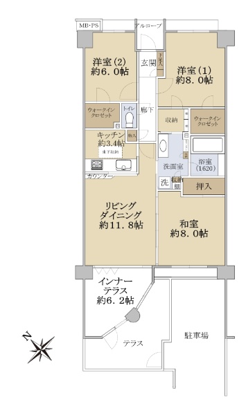 ☆南西向き1階住戸(テラス、インナーテラス、優先契約駐車場付き)