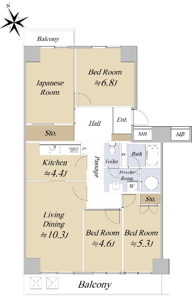 住友不動産(株)旧分譲/専有面積:87.46u/間取り:4LDK