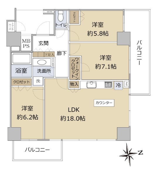 ■南東向きの角住戸 ■75.03uの3LDK ■二面バルコニー