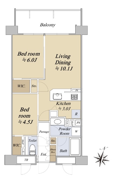 最上階住戸 同フロアに他のお部屋がない独立性 三方角部屋 浴室にも窓あり