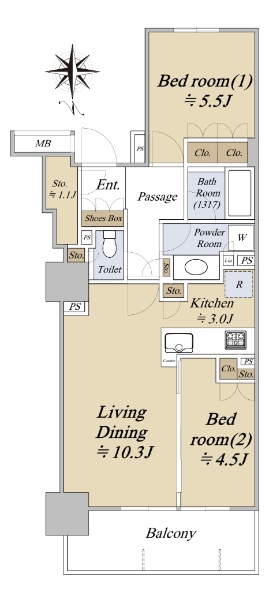 専有面積:75.02u 約8.6mのワイドスパンに開放的な3LDK