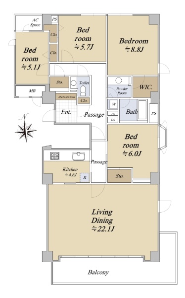JR山手線恵比寿駅徒歩8分 南東・南西向き角住戸 専有面積:79.23u