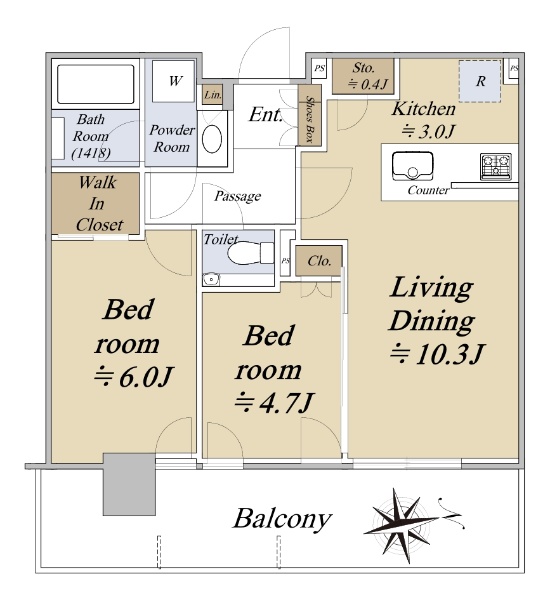 ウエストタワー20階部分 専有面積43.37u/1LDK+N+WIC