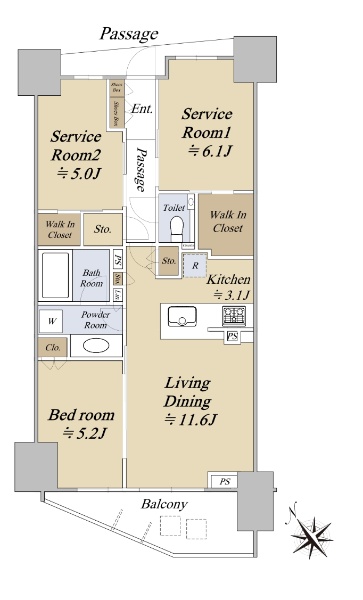 広いルーフバルコニー付の角部屋84.83u