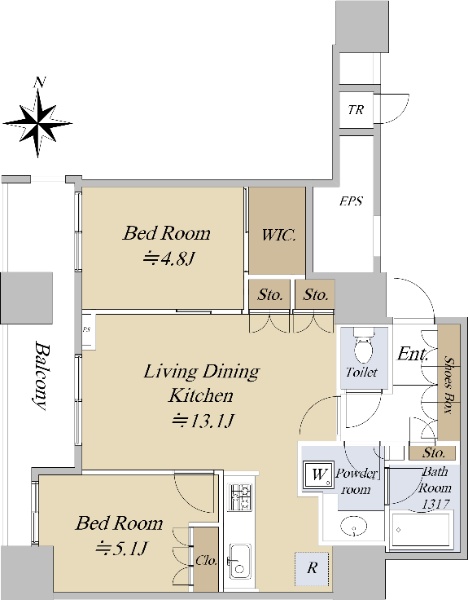 7階部分/北・東向き角住戸 2LDK+2WIC+Sto付きで収納豊富