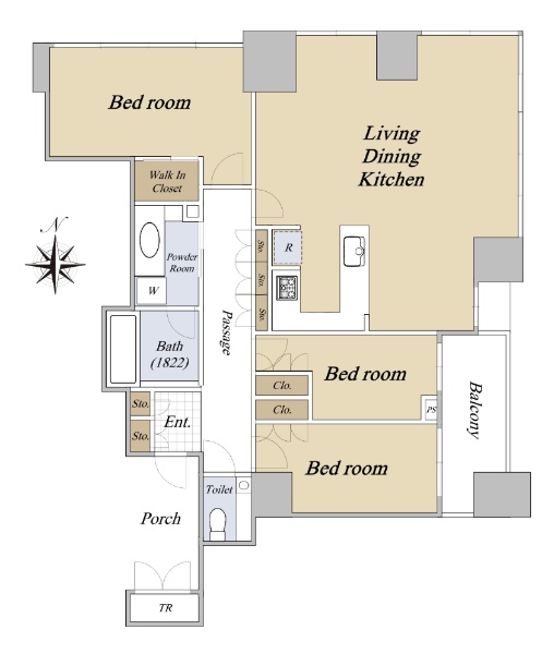 アクアタワー 西×北×東角住戸 充実した収納付き2LDK