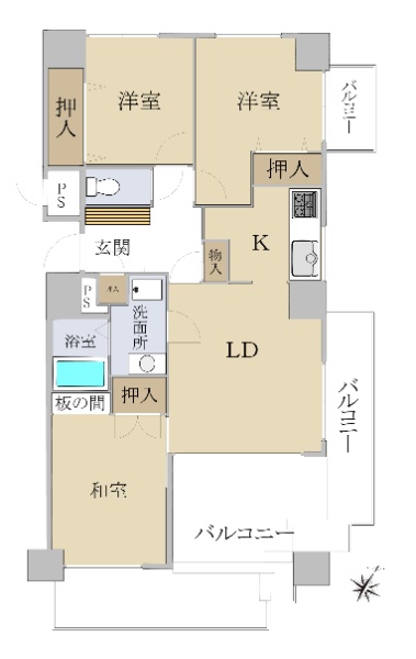 ■雁行型マンション ■眺望良好 ■専有面積:64.81u・3LDK