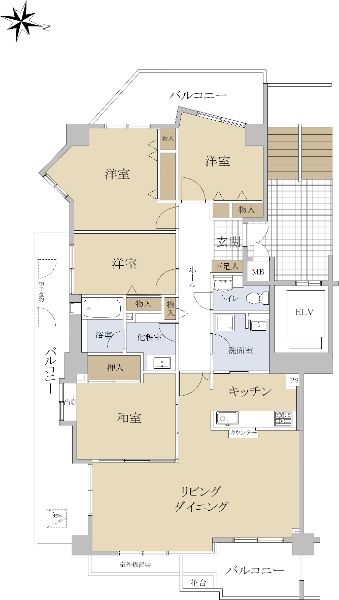 最上階7階・三方バルコニーのゆとり4LDK