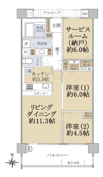 ペット飼育可(規約制限あり)の南向き住戸【専有面積70.05u、2SLDK】