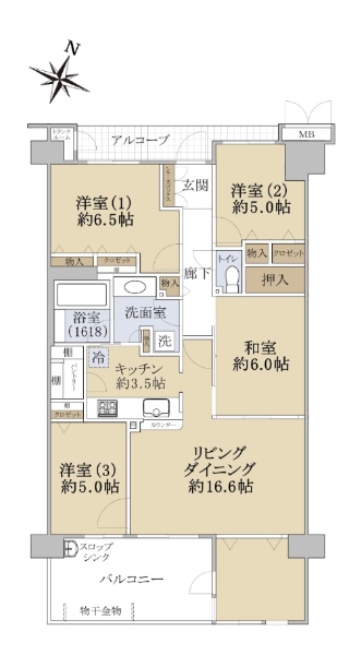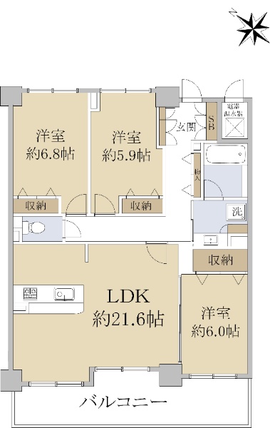 ☆北、西、東3方角部屋☆エレベーター各階停止☆3LDK