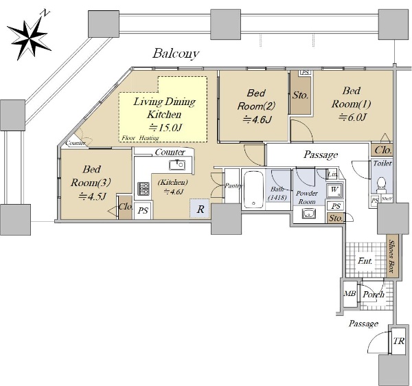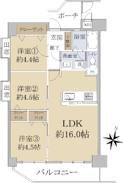 〇4LDK 〇専有面積76.26u 〇南東向き