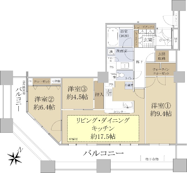 2沿線利用可能!北西角住戸!引き回しバルコニー!