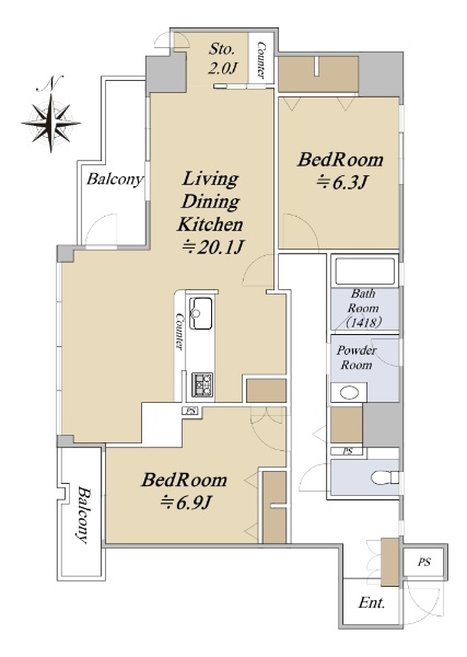 ■南向角部屋■19階建16階部分■72.61u(2LDK)■担当:城本