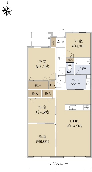 7階部分 南向きの間取りで陽当たり良好 現況空家 担当/黒木