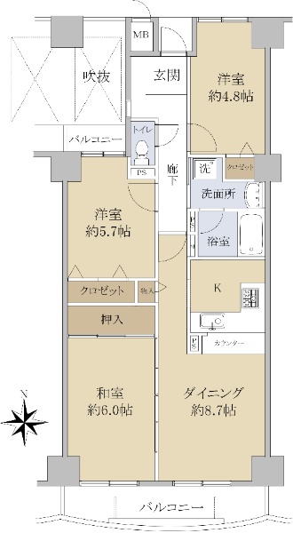 ■専有面積65.70uの3LDK■南向きバルコニー■3沿線3駅利用可能