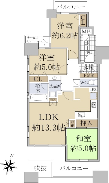 • 南向き(南西・南東含む)バルコニー方向が南向き(南西・南東含む)