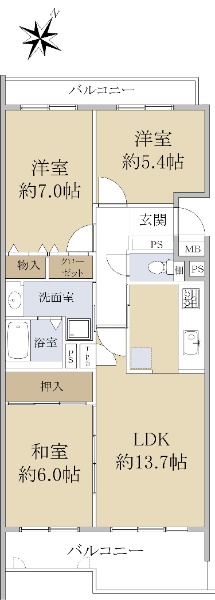 ☆3LDK☆最上階☆専有面積60.87u☆「松美台」バス停まで徒歩2分