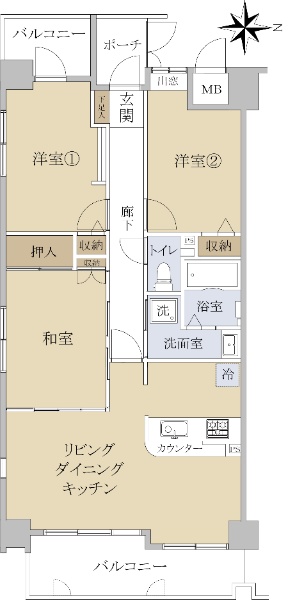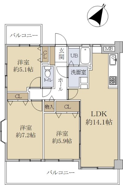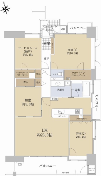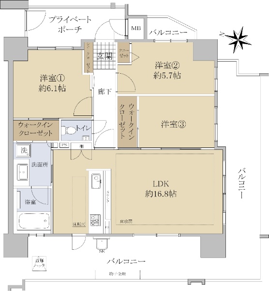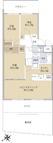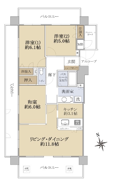 上幟町に存する113.19u(壁芯)の角住戸!収納豊富な3SLDK!