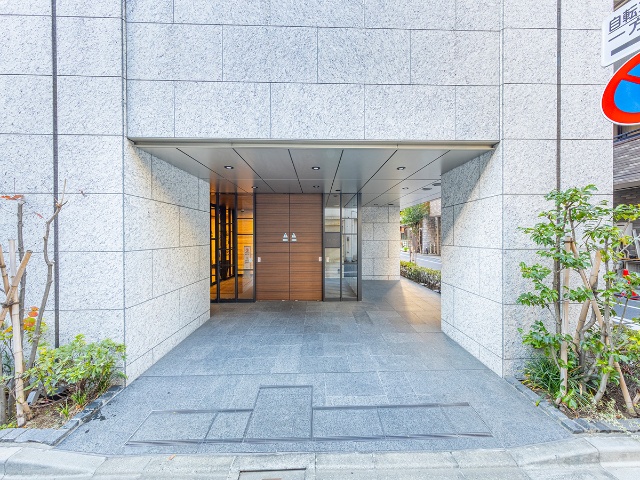 外観は細やかなホワイトカラーのタイル貼りで、基壇部の大判タイルが高級感を感じさせるデザインになっています。