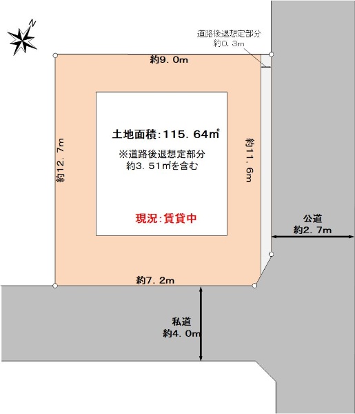南東角地に存ずるアパート(現況:賃貸中)