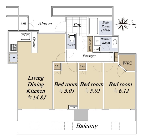 バルコニー方向が南向き(南西・南東含む)
