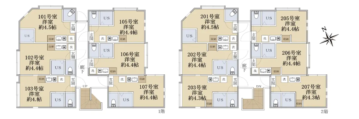 | 各住戸の専有面積 | 最小9.84m2〜最大10.00m2 |