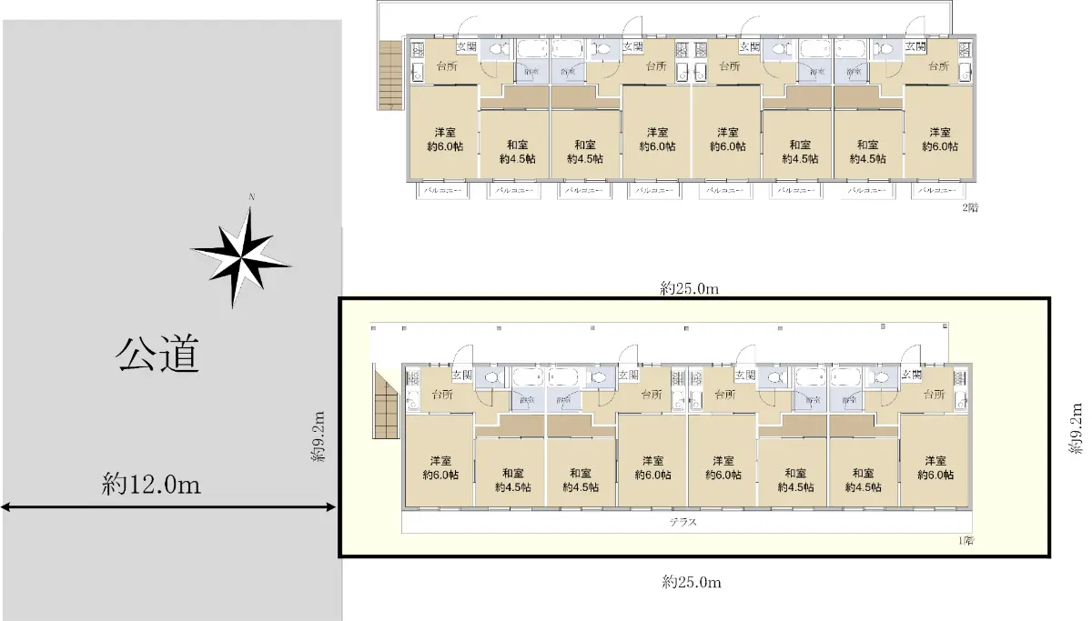 | 接道状況 | 一方道路・西12m(公道)接面9.2m |