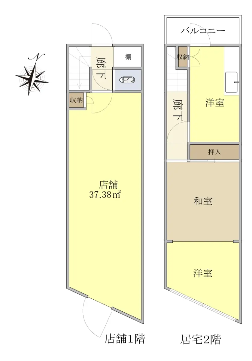 □2階建 1階部分店舗 2階部分住戸