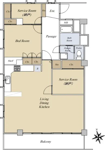 | 間取り | 1SLDK ※Sはサービスルーム(納戸) |