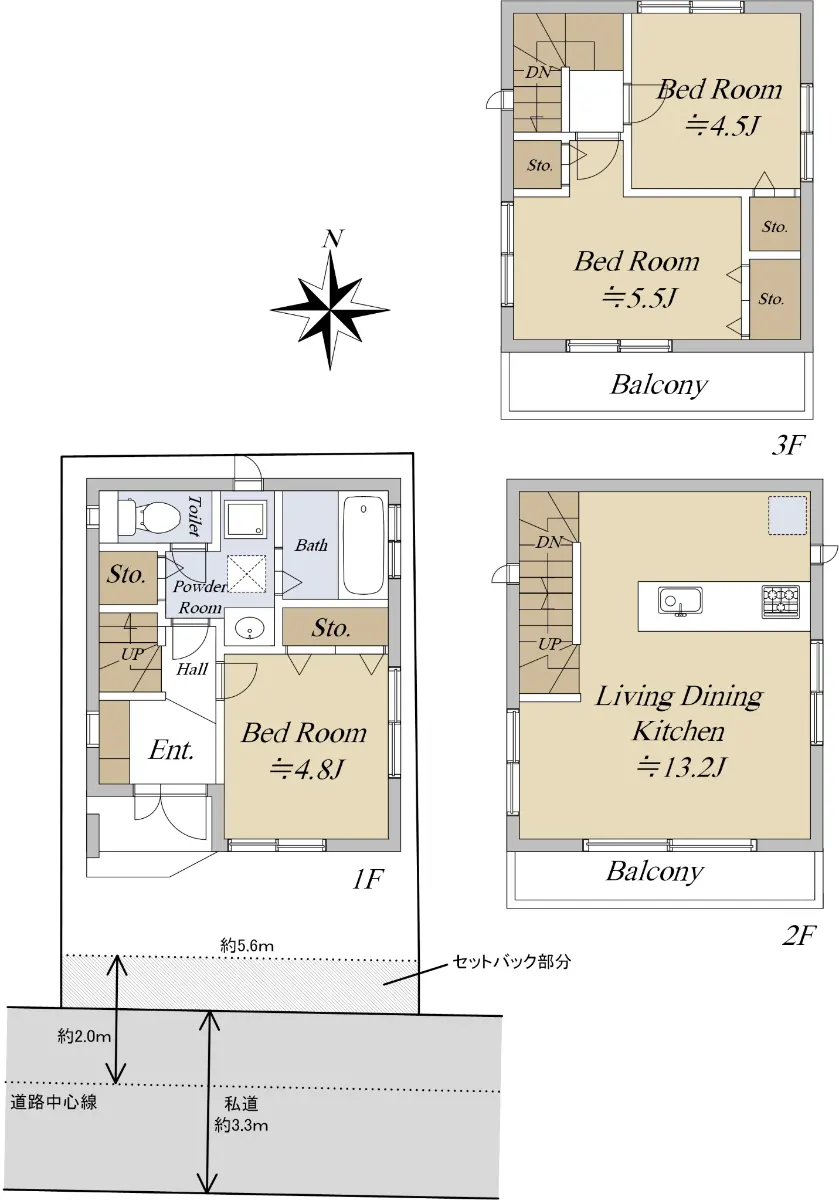 | 接道状況 | 一方道路・南3.3m(私道)接面5.6m |