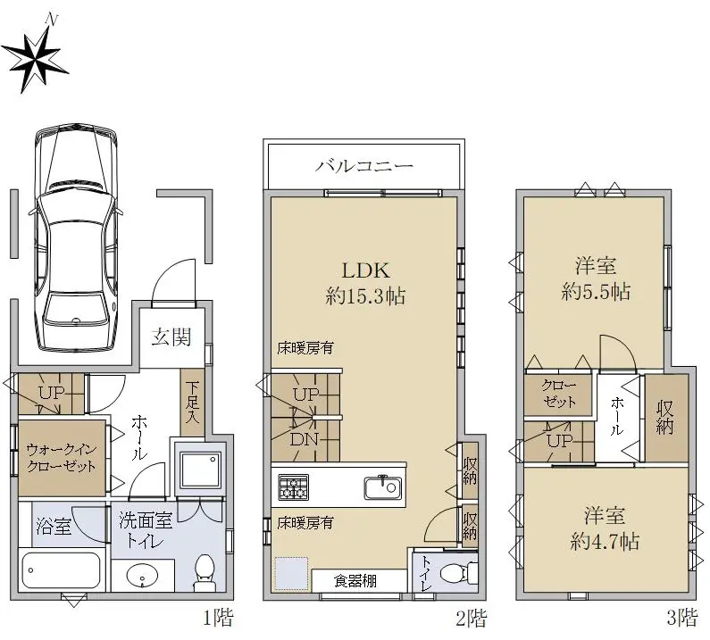 ・カースペース1台分(車種による)