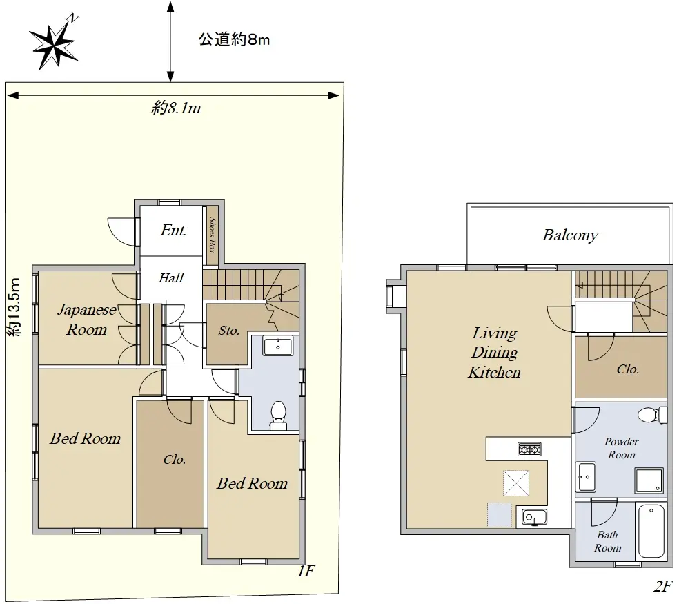 | 接道状況 | 一方道路・北西8m(公道)接面8.1m |