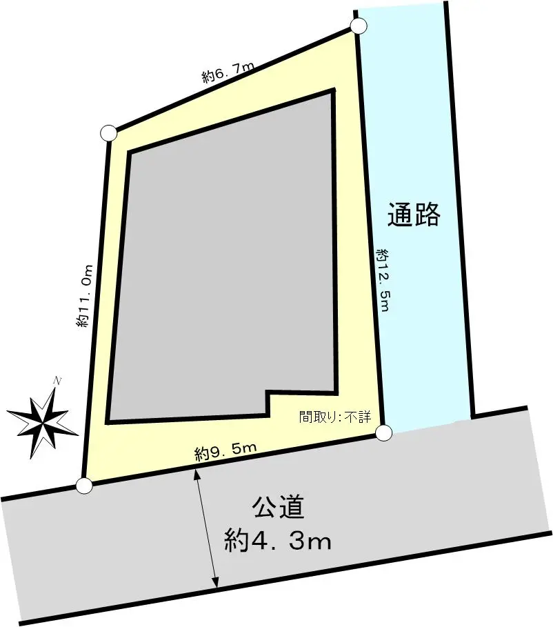 | 接道状況 | 一方道路・南東4.3m(公道)接面9.5m |