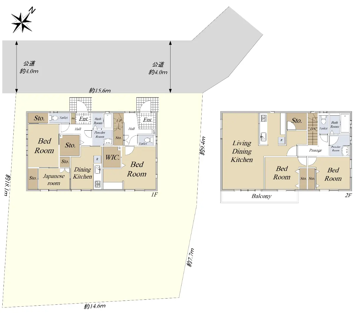 | 接道状況 | 一方道路・北西4m(公道)接面15.6m |