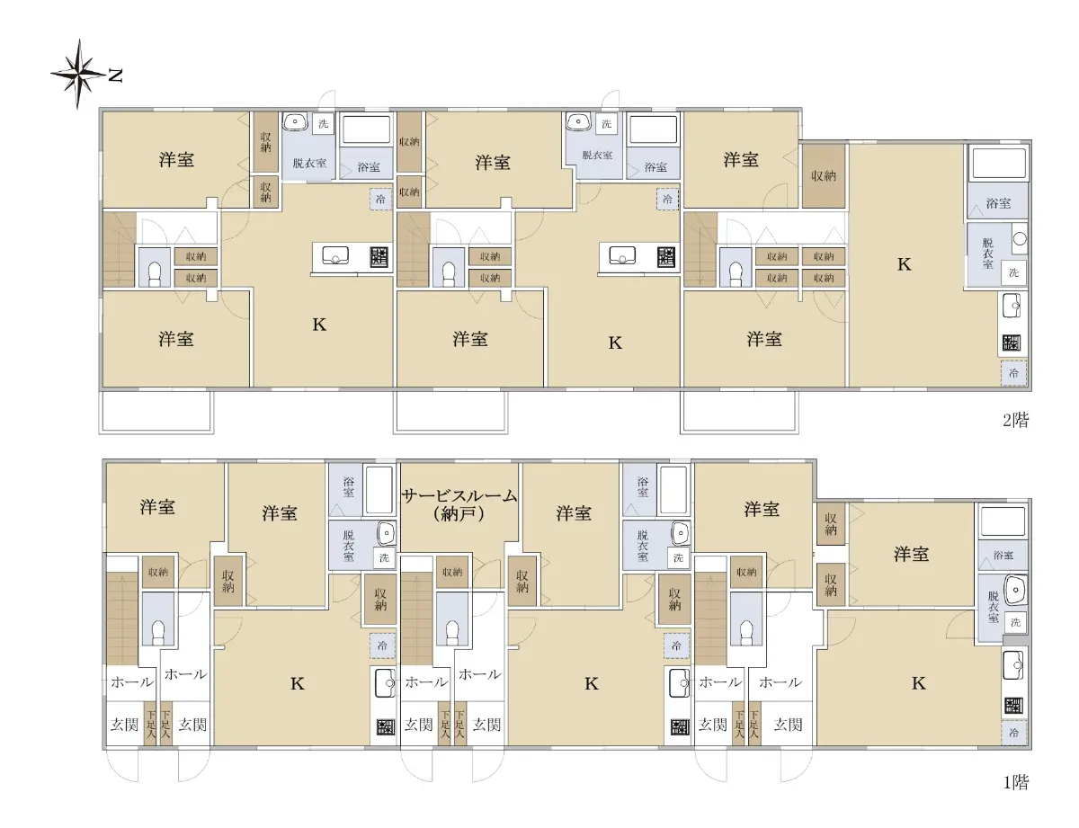 ◇間取り:2K×5+1SK×1(S:サービスルーム(納戸))