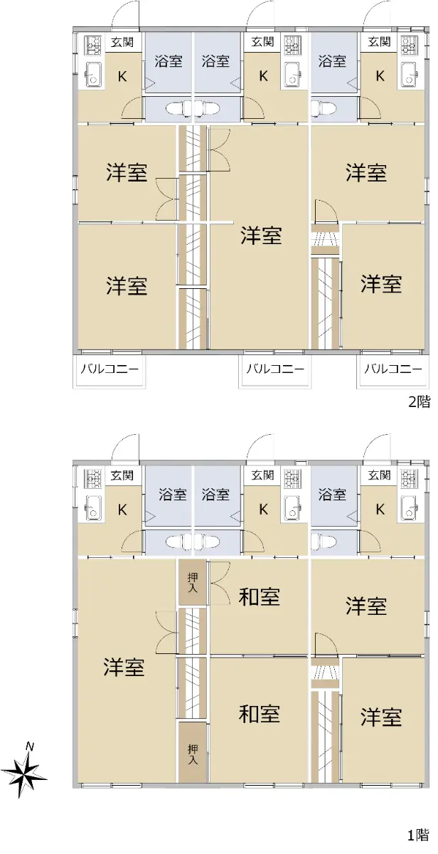 〇 間取り:1K×2部屋、2K×4部屋