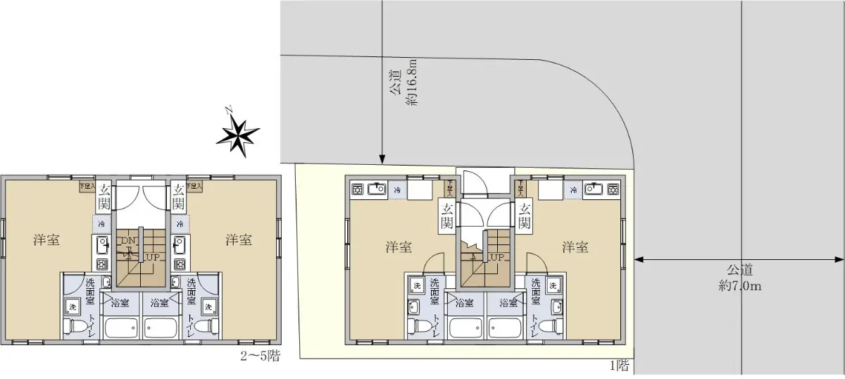 接道状況 | 角地・北16.8m(公道)接面10.4m/東7m(公道)接面6m |