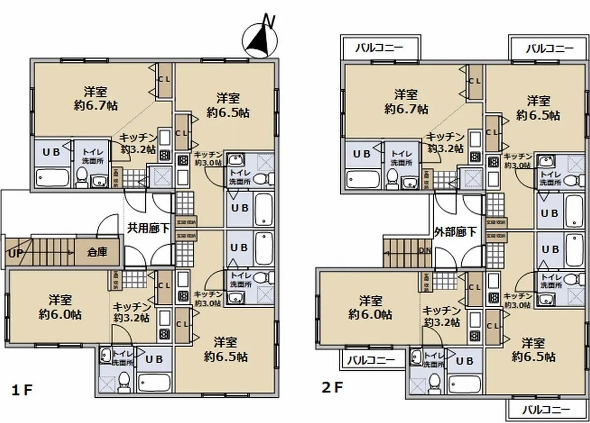 | 各住戸の専有面積 | 最小9.72m2〜最大10.85m2 |