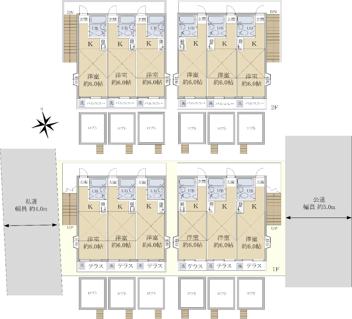 | 接道状況 | 二方道路・北西4m(私道)接面8.6m/南東5m(公道)接面8.7m |
