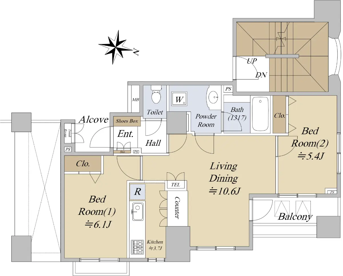 お部屋は【7階部分、2LDK+トランクボックス】のタイプです。